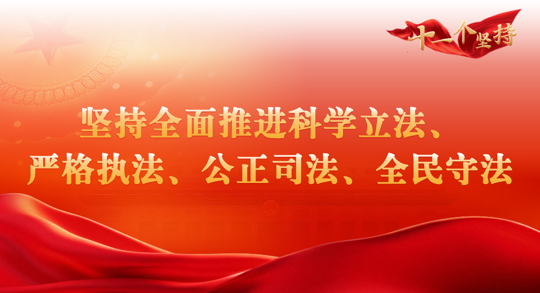 • 堅(jiān)持全面推進(jìn)科學(xué)立法、嚴(yán)格執(zhí)法、公正司法、全民守法